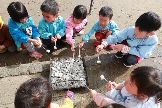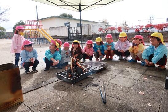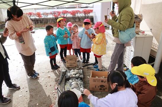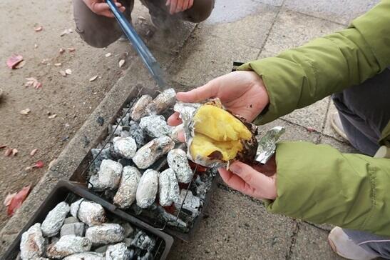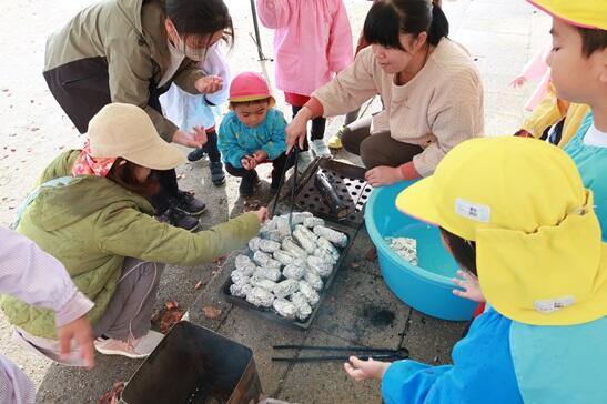 11月20日(月)かがやきファーム(園畑)で収穫したさつまいもで、焼き芋会を行いました。