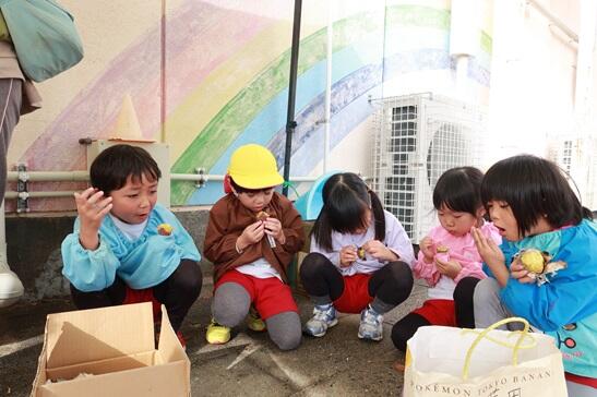 最初は、焼きいもは苦手という子どももいましたが、自分たちで育てて、目の前で焼いて、結局みんな丸々1個ペロリとたいらげてしまいました。幼稚園マジックですかね?