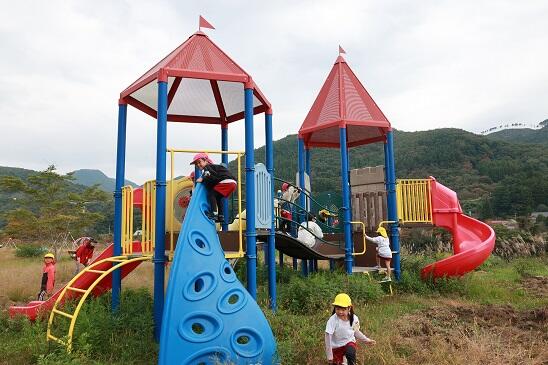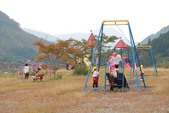 ダム下の広瀬公園では、遊具で遊んだり虫取りをしたりして、秋の茂庭を満喫しました。