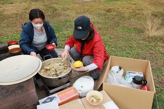 秋晴れの茂庭、広瀬公園で、美味しい芋煮をいただきながら昼食です。