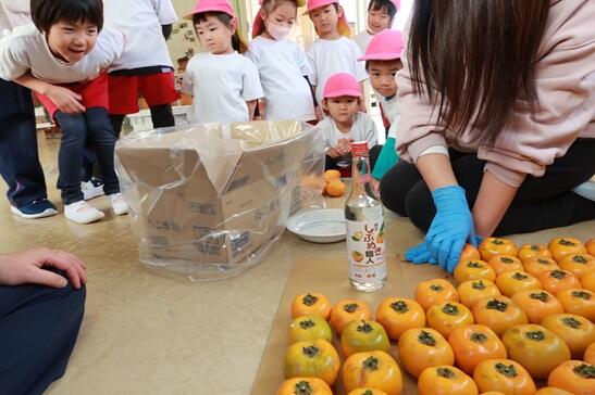 園長先生からいい話を聞きました。「この渋柿は、魔法で甘くすることが出来るんだよ!」