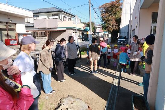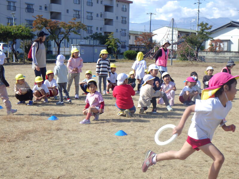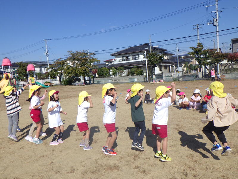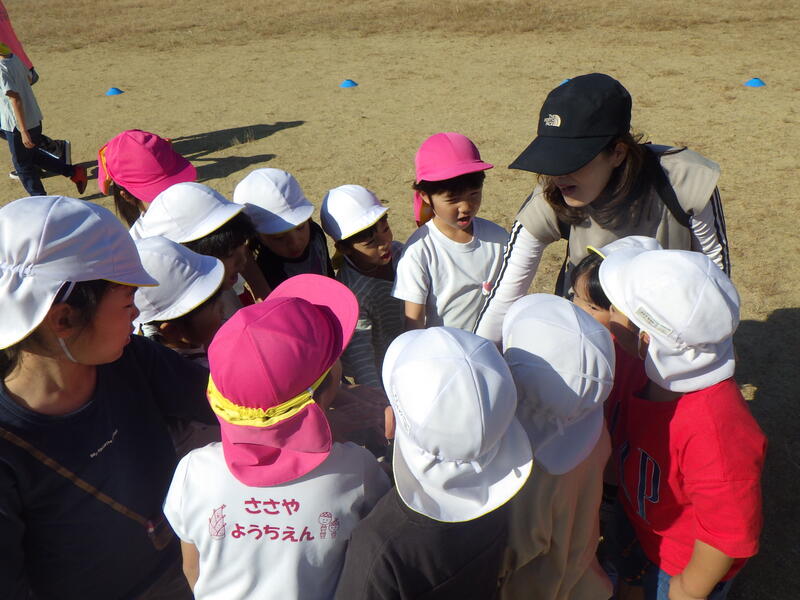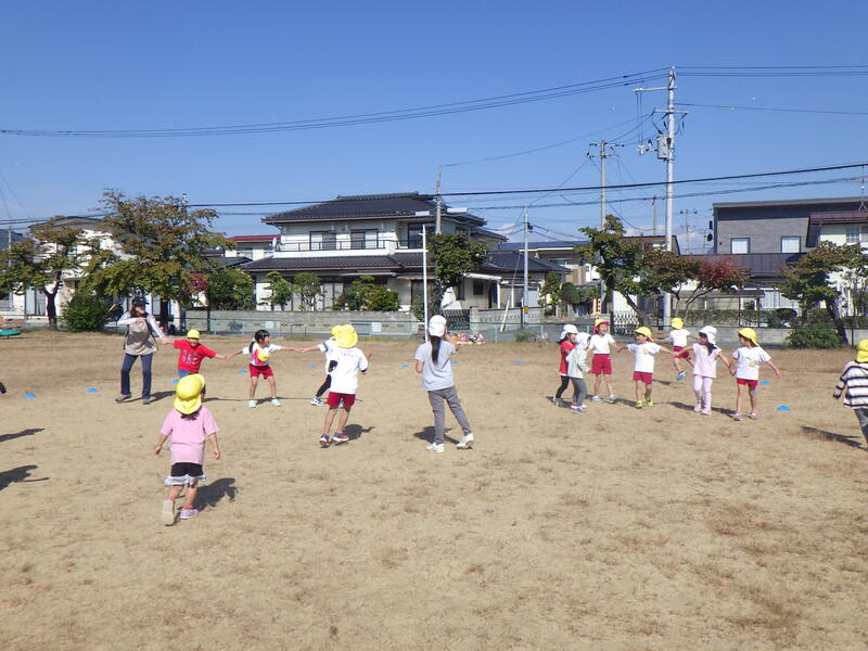 10月24日(火)今年度2回目の笹谷幼稚園と笹谷保育所の交流会を、笹谷公園で行いました。前回は、笹谷小学校のプールを借りて行いました。