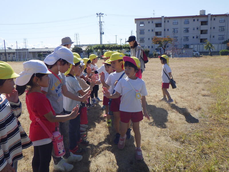 仲良くタッチ、再会を約束して、笹谷幼保交流会を終わりました。