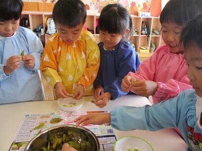 10月24日(火)に23日(月)に渡辺さんからいただいた枝豆でパンケーキ作りをしました。