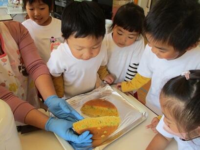 この後、年長・年少で分け合っていただきました。皆さんも作ってみてはいかが、とっても簡単だよ。