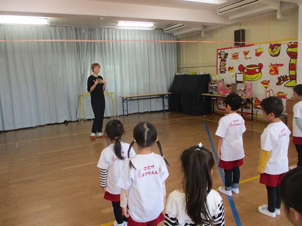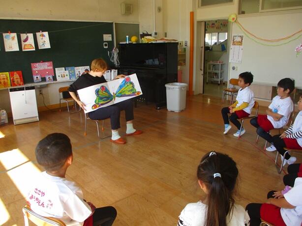 子どもたちに英語で絵本の読み聞かせやダンスをしていただきました。