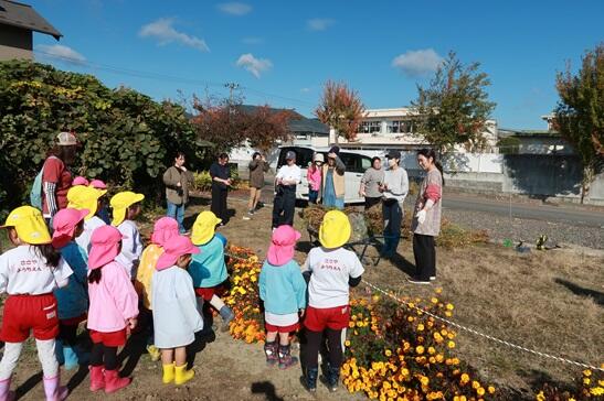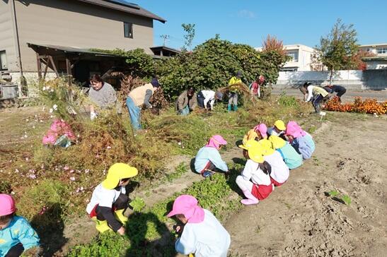 環境委員の皆さんには、園庭の落ち葉掃きや側溝の土上げの他に、かがやきファーム(園畑)のコスモスの整理もしていただきました。ありがとうございました。