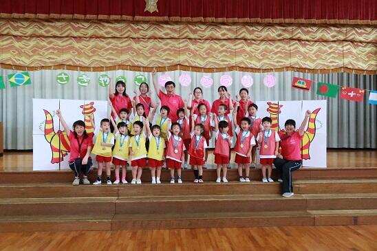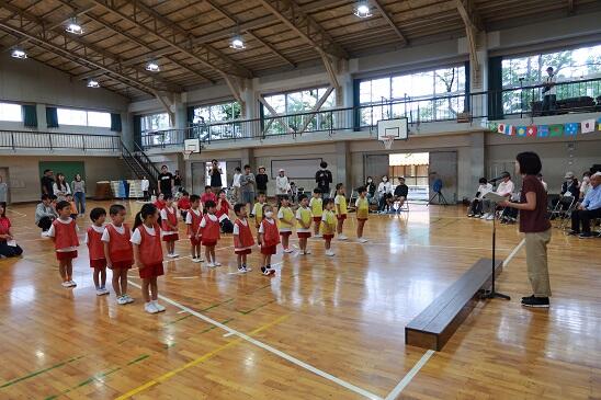 会場の皆さんの大きな声援で盛り上がった「ささやっこ運動会」もあっという間に閉会式です。メダルや記念品をもらって園児たちはうれしそうです。