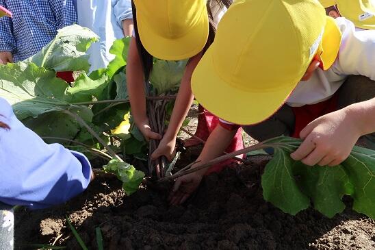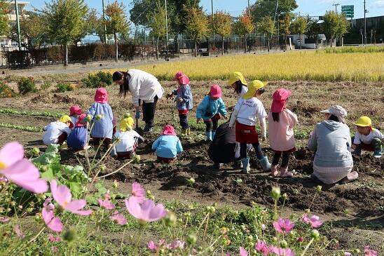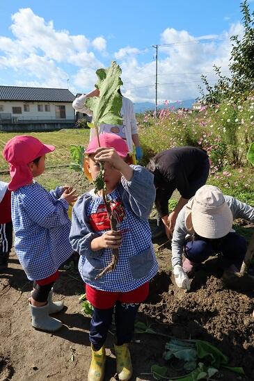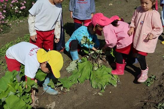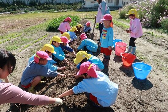 10月12日(木)かがやきファーム(園畑)でさつまいも掘りをしました。