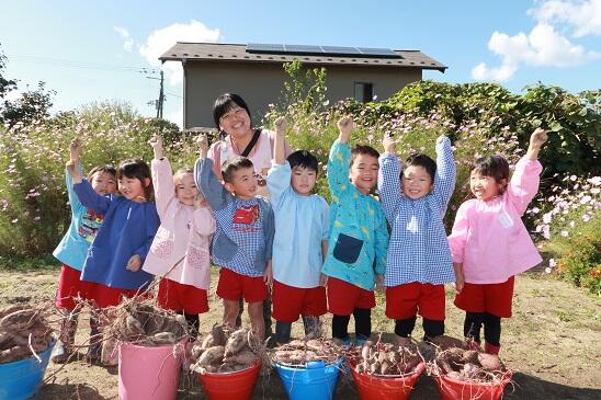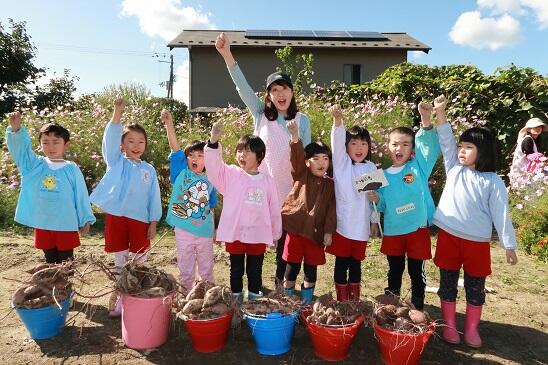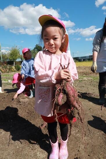 「わあうれしい!今年もさつまいも大豊作でーす!オー!」