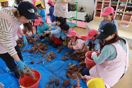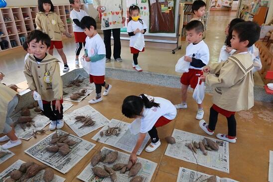 子どもたちは、それぞれに家に持ち帰るサツマイモを自分で選びました。家でどうやって食べようかなー?