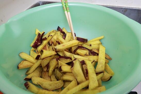 なおみ先生に、サツマイモを素揚げしてもらいました。園中にいい匂いがいっぱいになりました。
