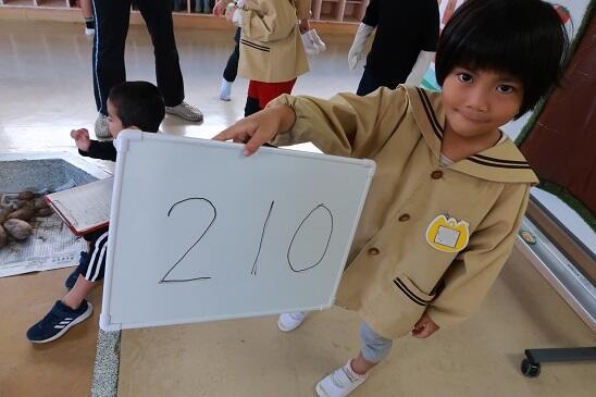 10月13日(金)昨日の12日(木)に収穫したさつまいもの数を数え、お昼に素揚げしたサツマイモをいただきました。