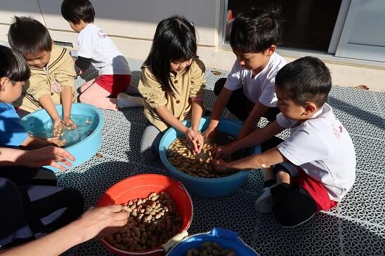 5月に植えた種が、10月にはたくさんの落花生になりました。子どもたちは夏休みも欠かさず毎日手入れをしてきました。