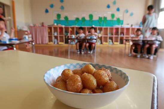 6月20日(火)、6月19日(月)に収穫した園畑のジャガイモを20日(火)のお昼に味噌絡めにして食べました。