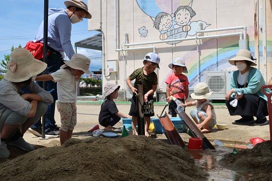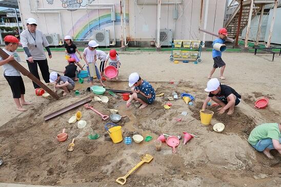 幼児期の砂場での遊びは大切な学習の機会ですね。