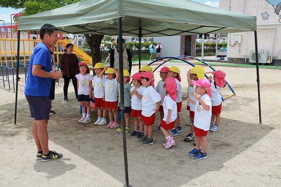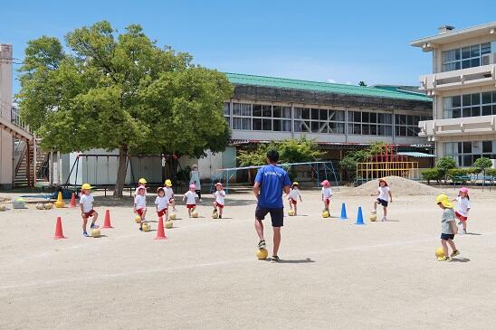 6月20日(火)今年もなべちゃんコーチをお招きし、第1回目のサッカー教室を開催しました。今年度は4回実施する予定です。