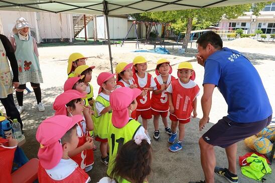 なべちゃんコーチの楽しいトークで子どもたちは大喜びです。