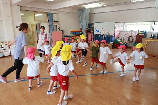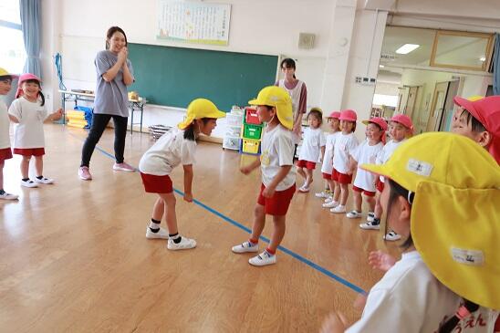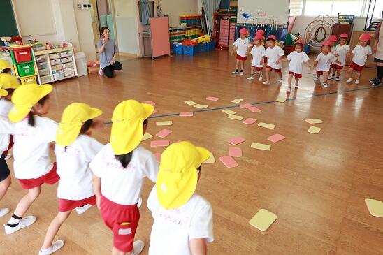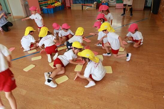 6月21日(水)今日は年少・年長児が一緒に、遊戯室で「はないちもんめ」と「スポンジゲーム」をして楽しく過ごしました。