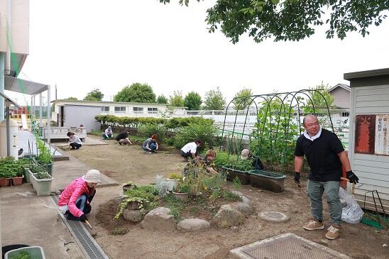 7月3日(月)の朝の時間に、PTA環境委員の皆さんに園庭の除草作業をしていただきました。