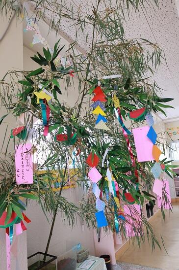 7月7日の七夕会に向けて、園児一人一人の願いが飾られている短冊に込められています。