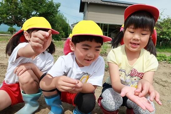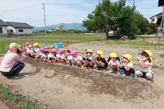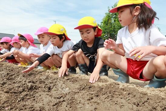 みんなで耕した畑に、一人一粒づつ丁寧に植えました。