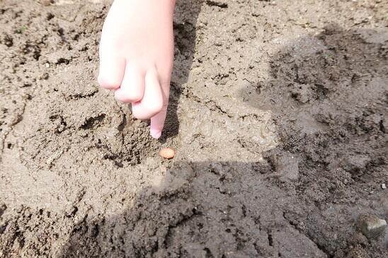 6月1日(木)かがやきファームに、落花生の種を蒔きました。