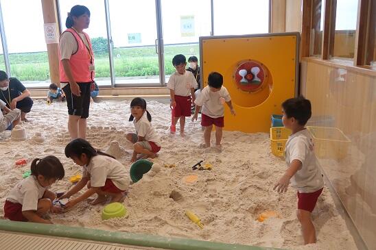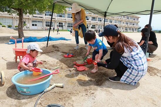 6月6日(火)に今年度8回目の未就園児保育を実施しました。今回から4名の新しいお友達が加わりました。今日は暑いので、砂場遊びはテントの下です。