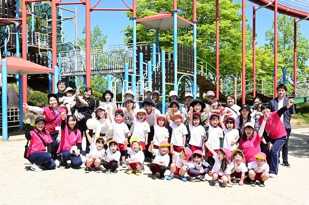 5月12日(金)保原総合公園に親子遠足に行きました。天気は快晴、絶好の遠足日和でした。最初にみんなで記念撮影です。