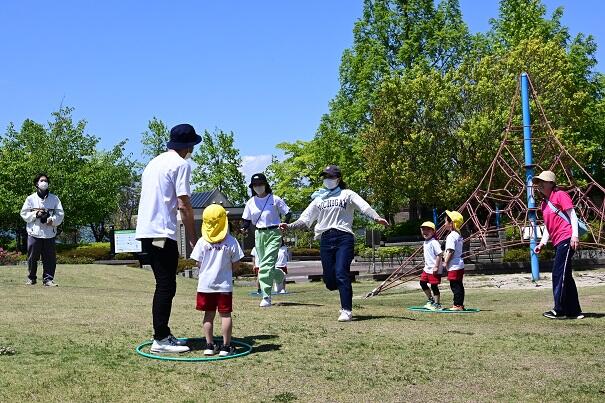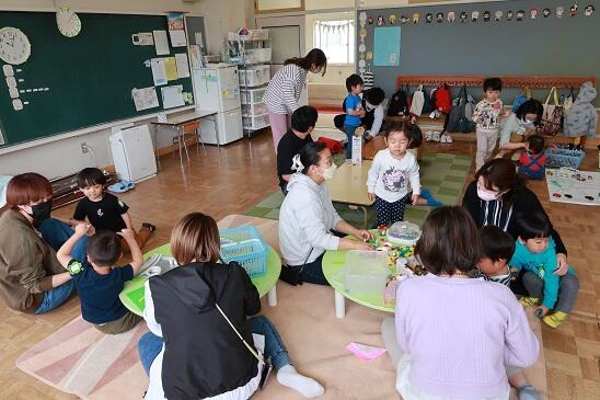 昼食の後は、年少と年長に分かれて親子でゲームなどをして過ごしました。