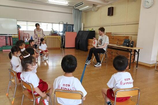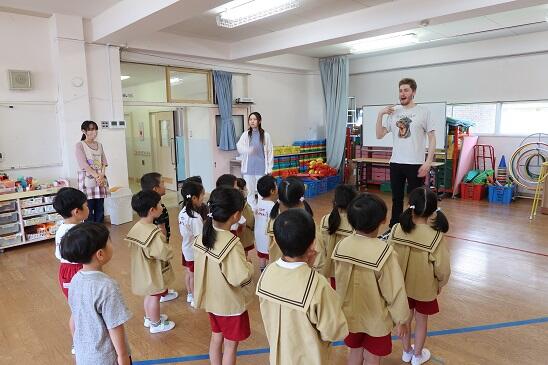 オスカー先生は自己紹介の後、園児一人一人に英語で名前を聞きました。