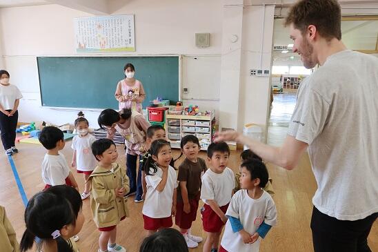 5月18日(木)ALT(英語指導助手)のオスカー先生が来園しました。今年度は4回来ていただく予定です。