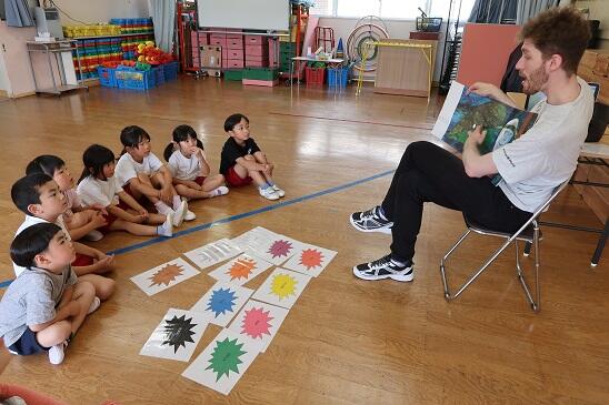子どもたちは、英語でいろいろな色の言い方を楽しく学びました。オスカー先生楽しい英語教室ありがとうございました。