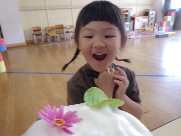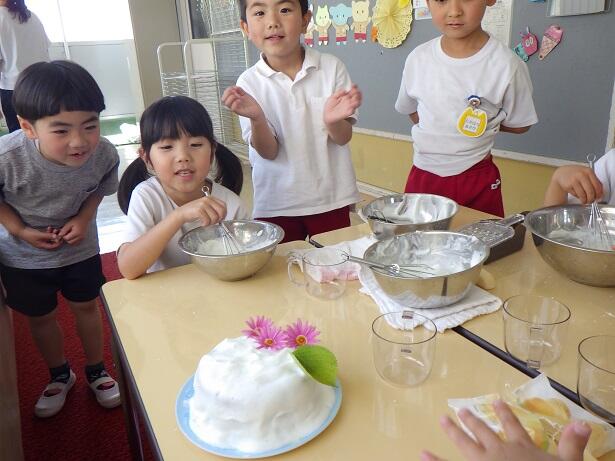 見た目が本物のケーキのようになり、年少の子どもたちもびっくりです。
