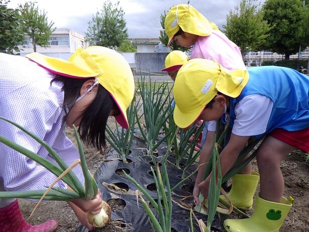 5月24日(水)、昨年10月に植えたたまねぎを、みんなで収穫しました。