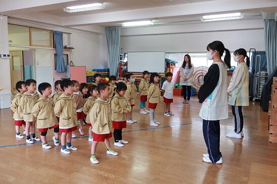 5月26日(金)、本園で15日間の幼稚園教育実習を終えた2人の実習生のお別れ会を遊戯室で実施しました。