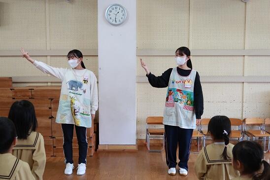 実習生から子どもたちに、手話つきの歌のプレゼントがありました。