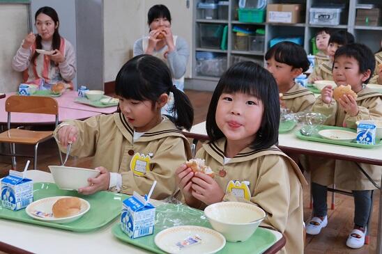 2023年5月29日 15時24分5月29日(月)5月の給食試食会を実施しました。今回のメニューは、バーガーパンに、エビカツ、タルタルソース、コールスローサラダをはさんだ豪華バーガーと、アスパラのポタージュ、それに牛乳です。
