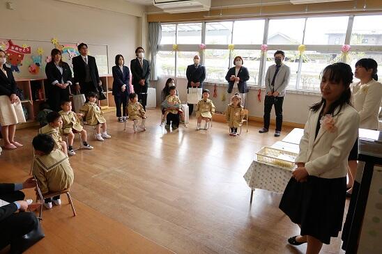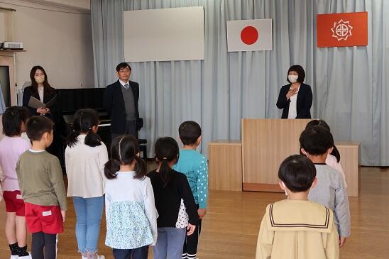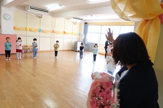 3月31日(金)本園では、今野春香先生がいいざか幼稚園に異動することになったので、離任式を行いました。春香先生からお別れの言葉をいただきました。