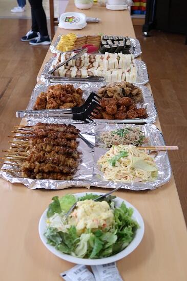 一人一人好きなメニューを食べられる分だけ皿に取っていきます。