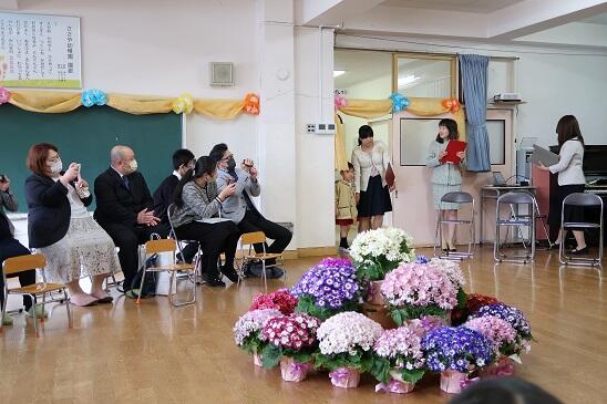 PTA会長さんから花束をお渡ししました。
