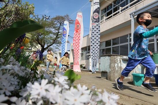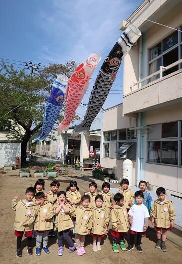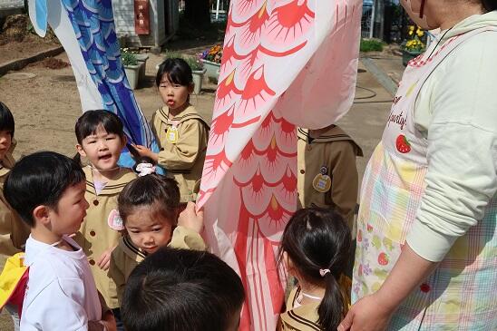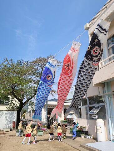 4月18日(火)に、園庭に子どもたちが健やかに育つようにと鯉のぼりを飾りました。