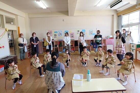 年少は、好きな遊びの様子の参観や自己紹介をしました。