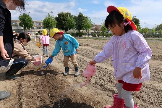 2023年4月24日 11時53分4月25日(月)今日はかがやきファームの水やりの後、みんなでカボチャの種を蒔きました。