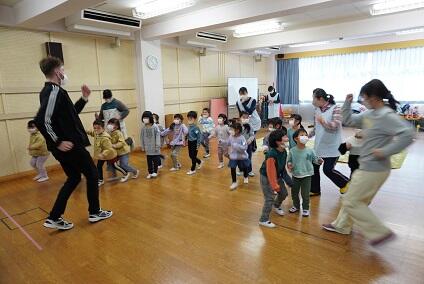 子どもたちもオスカー先生も笑顔で、すてきな英語指導の幼保交流会でした。