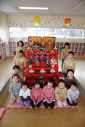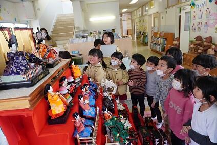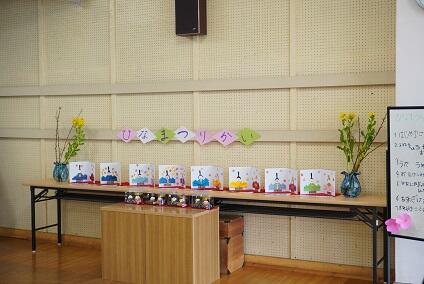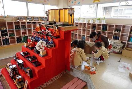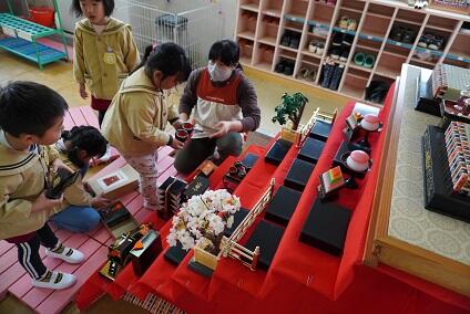 2月20日(月)年長児が玄関に雛壇を飾りをしました。