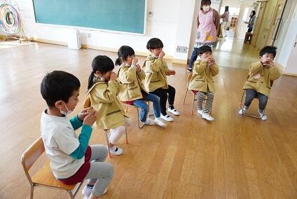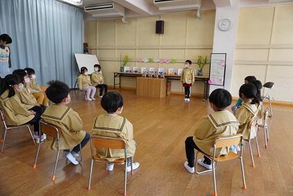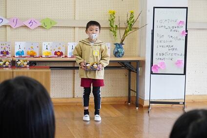 4月になると、年長さんは小学生に、年少さんは年長「たけのこ組」になります。希望に満ちた楽しいお別れ会になりました。
