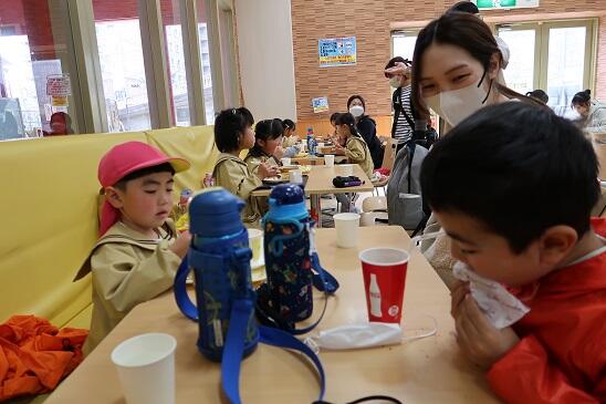 昼食は、1階のフードコートで園児がそれぞれメニューを選んで注文しました。