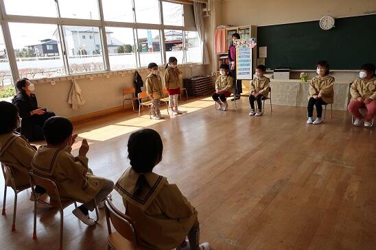 2月17日(金)笹谷幼稚園と笹谷保育所の幼保交流会を、笹谷幼稚園の遊戯室で行いました。