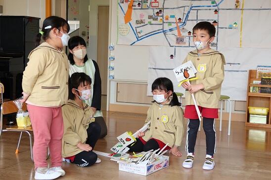 年長児から年少児への引き継ぎです。年長さんはたくさんのことをしていたんですね。